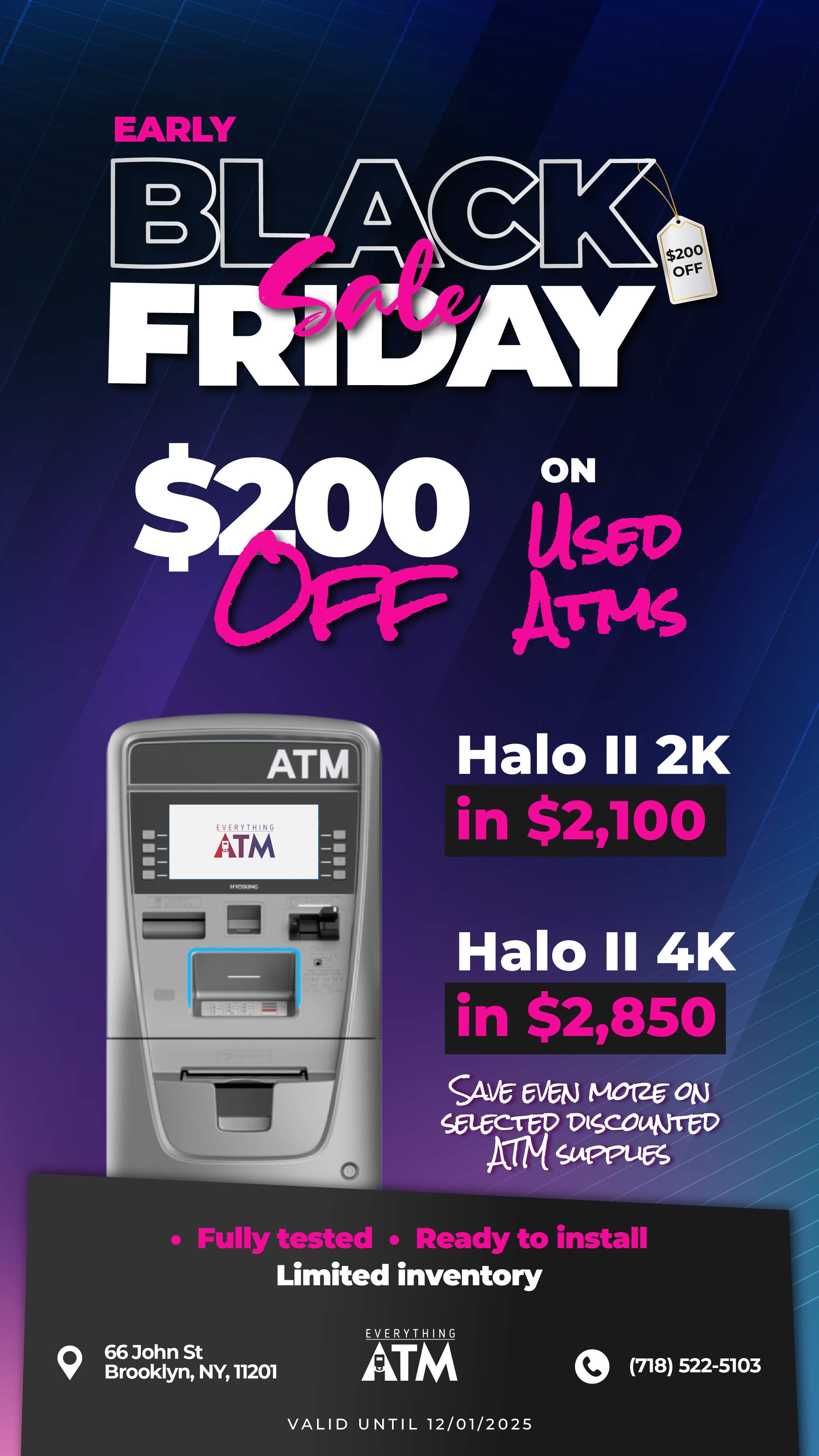 The cost of renting or purchasing an ATM varies depending on the machine type and the services you require. For specific pricing details, please contact us for a customized quote.